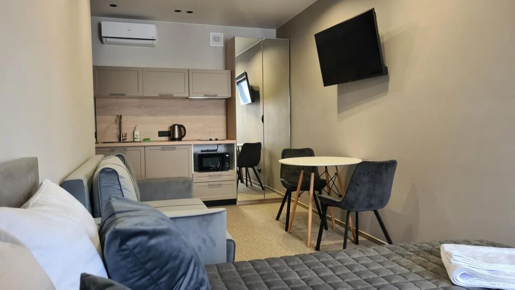 Free Wi-Fi is available on the territory. Ask for more information when checking in. If you travel by car, there’s a parking zone. The staff of the apartment speaks Russian.