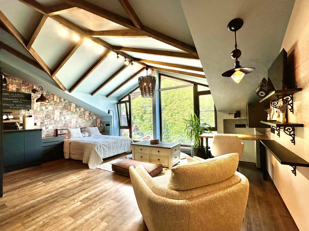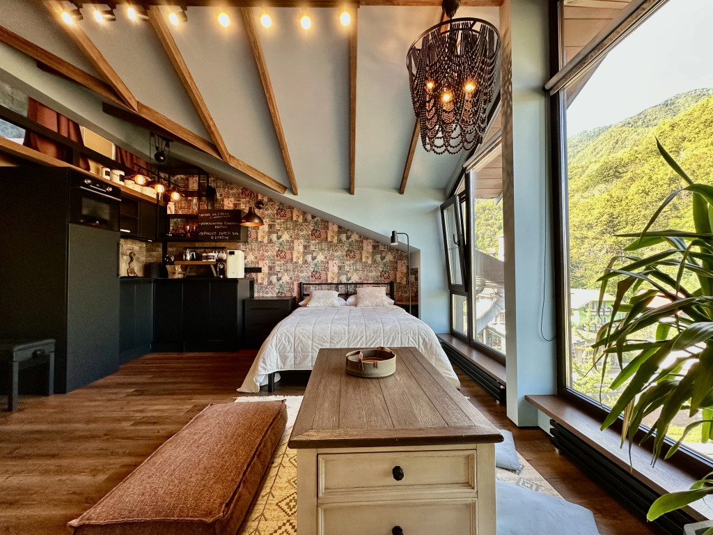 If you want to feel like you’re at home no matter where you are, choose this — apartment «#42 Dvukhurovnevye S Panoramnym Vidom Na Gory Apartments» is located in Krasnaya Polyana. This apartment is located in walking distance from the city center. You can take a walk and explore the neighbourhood area of the apartment — Krasnaya Polyana Ski Resort, Mamzdishha Mountain and Akhun Tower.