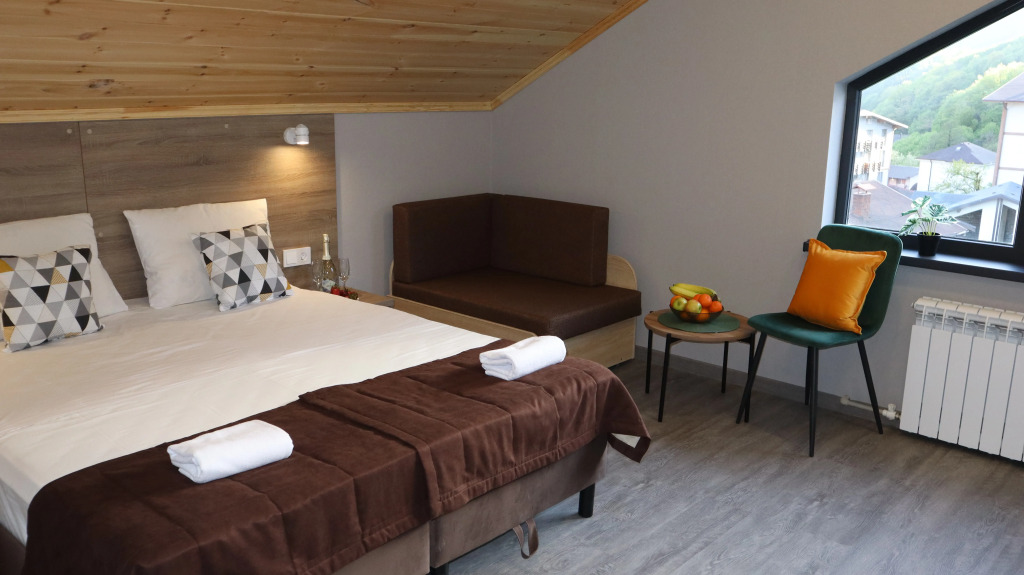 Feeling like at home during the long journey is priceless. Guest house «Polyana 315 Guest House» is located in Krasnaya Polyana. This guest house is located in the city center. In the morning, have a cup of coffee while looking at the city from the window. You can take a walk and explore the neighbourhood area of the guest house — Krasnaya Polyana Ski Resort, Mamzdishha Mountain and Akhun Tower.