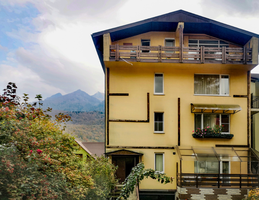 A great option for family vacation: apartment «Turchinskogo 50 Apartments» is located in Krasnaya Polyana. This apartment is located in the very center of the city. In the morning, have a cup of coffee while looking at the city from the window. You can take a walk and explore the neighbourhood area of the apartment. Places nearby: Krasnaya Polyana Ski Resort, Mamzdishha Mountain and Akhun Tower.