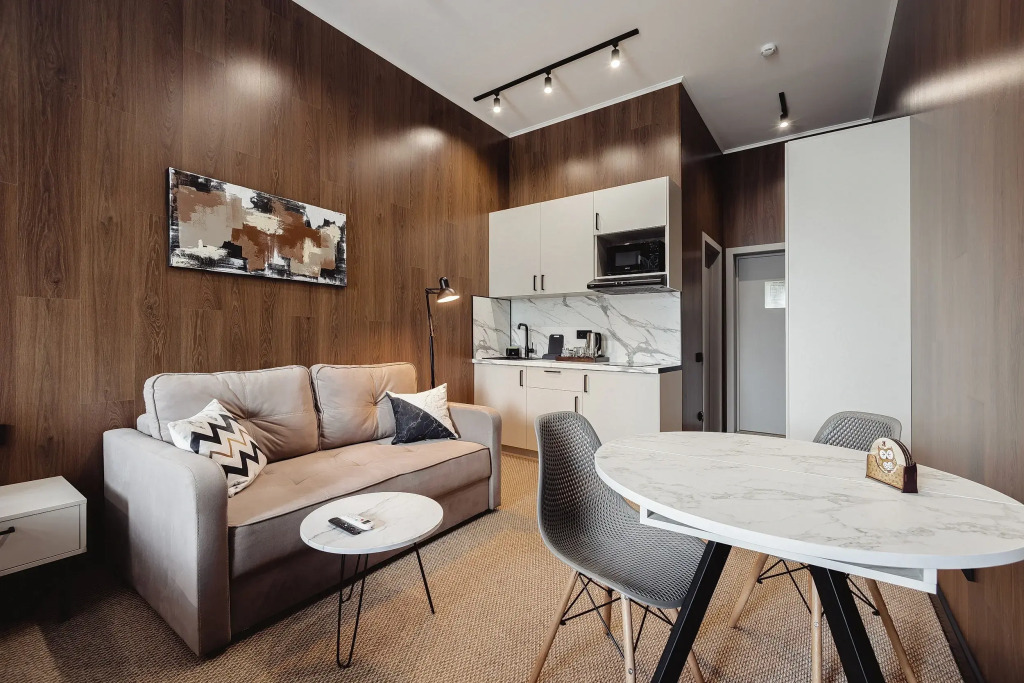 If you want to make your journey even more comfortable, you can order a transfer. At the guests’ disposal, there’s also a laundry, private check-in and check-out, ironing and a concierge. The staff of the hotel speaks Russian.