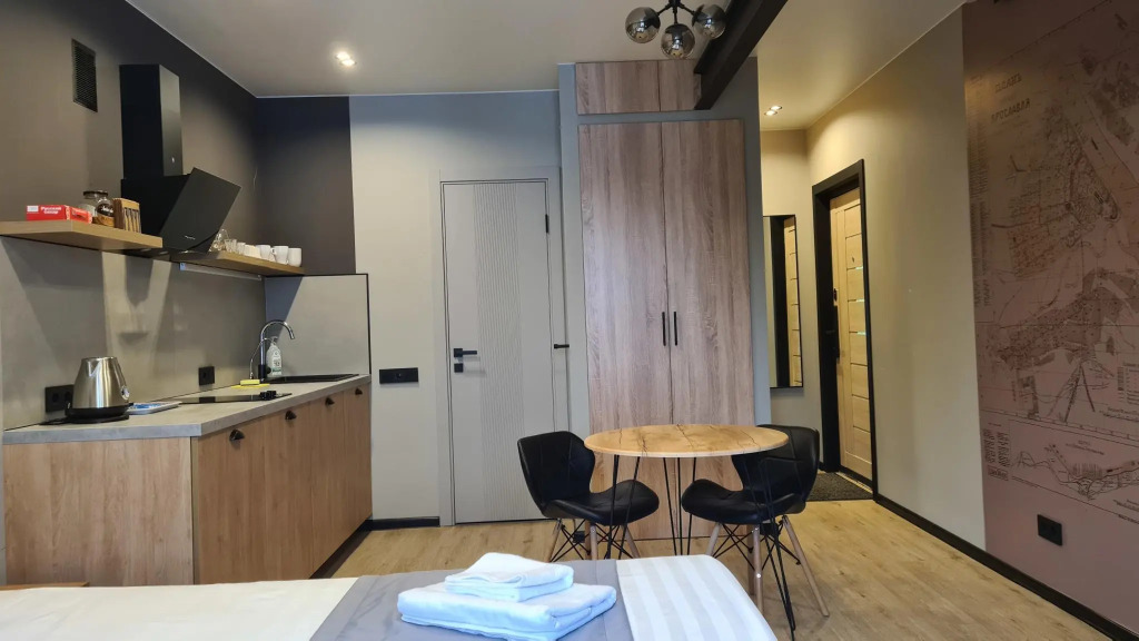 A perfect fit for a big group of travellers: apartment «Apartments on Pervomaisky lane» is located in Yaroslavl. This apartment is located in the very center of the city. Before going to bed, you can walk around the main landmarks of the city. You can take a walk and explore the neighbourhood area of the apartment — Volkov Theatre, Church of Elijah the Prophet and Museum "Music and Time".