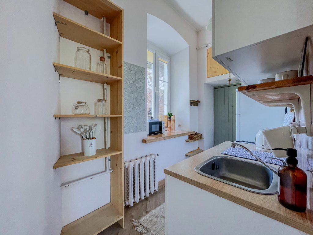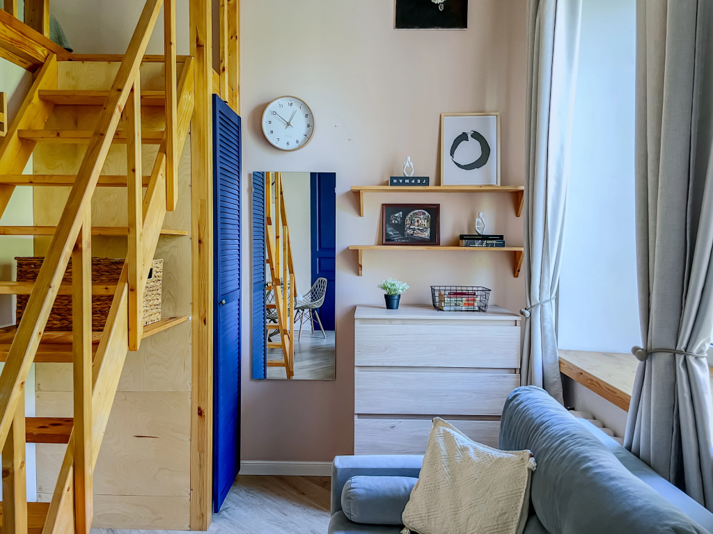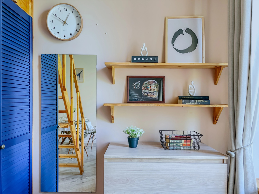 The apartment offers a double bed, a double sofa, wardrobes and cabinets for belongings, free Wi-Fi, a washing machine, air conditioning, towels, bed linen, and toiletries for each guest.