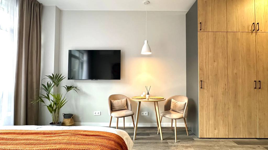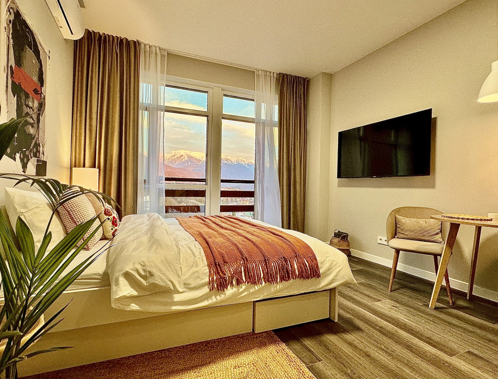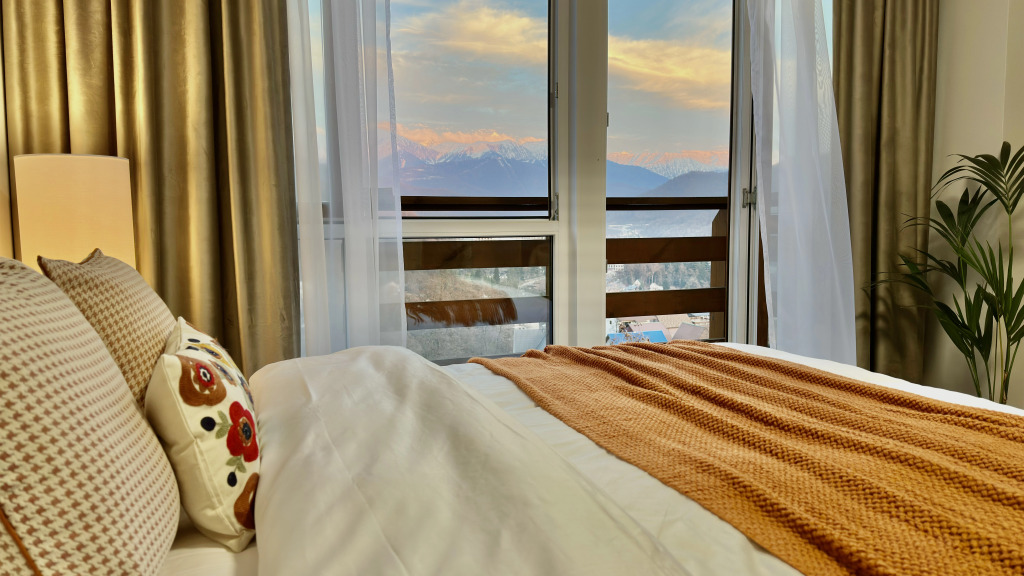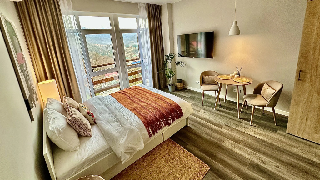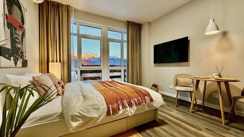 Russian citizens must have an original Russian passport upon arrival. Front desk is open 24/7. The deposit is refundable and is charged for the entire stay. The deposit will be withheld in case of violation of house rules, damage, or removal of property. If the damage or removal exceeds the deposit amount, a fee will be charged according to the value of the damaged item for the period the malfunction is detected. The deposit is refunded during the day on the day of check-out, if there are no violations, and is transferred to the guest's card. Check-in with children is possible from 8 years old; children are counted as full guests. Comfort class transfer to or from the airport — RUB 2500.00. Additional bedding or linen change on request — RUB 1500.00. Bathrobes — RUB 1000.00. Cleaning on request — RUB 2500.00. It is forbidden to walk in ski boots in the apartments. Skis and snowboards may be stored in the apartment only clean and dry; there is a mount by the entrance door. There are live flowers in the apartments — do not water them, the maids take care of them. Smoking and parties are prohibited; violations result in a fine withheld from the deposit. Bicycle parking in the apartment is not allowed. The apartment is not intended for commercial photoshoots. Mountain weather is changeable. In foggy, rainy, or snowy weather, the view from the window may differ from the photo taken from the balcony. Windows are not equipped with stoppers; please be vigilant when staying with children. The balcony is not glazed. In the winter season, ski buses stop close to the apartments — free transport to any ski resort with a ski pass. Cleaning and room inspection are carried out after check-out. Daily cleaning and linen change are not provided but can be arranged on request for an additional fee.