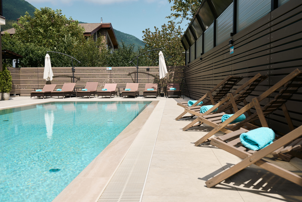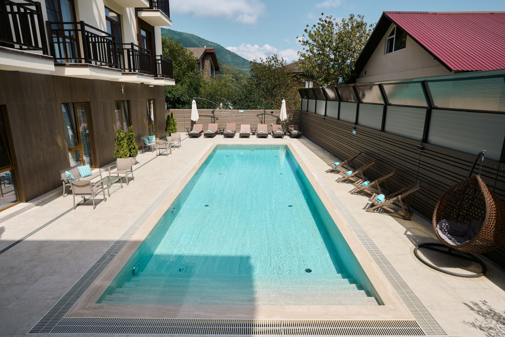 Wi-Fi is available. If guests travel by car, there’s a parking zone. Swimming fans are going to enjoy a pool and an outdoor pool. At the guests’ disposal, there’s also ironing. The staff of the apart-hotel can to talk to guests in Russian. Guests will find the following in the room: a TV. The room equipment depends on its category.