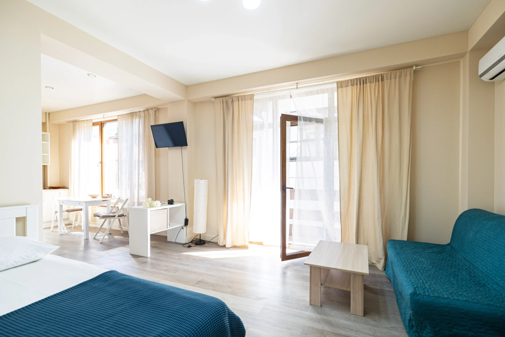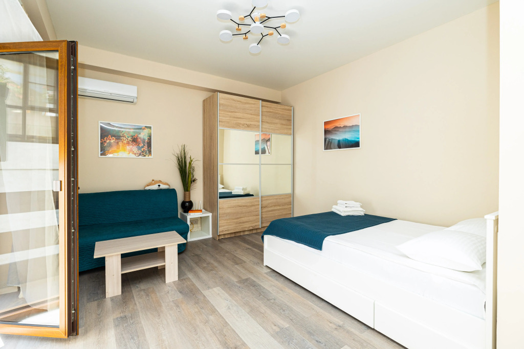 If you want to feel like you’re at home no matter where you are, choose this — apartment «Studiya na Turchinskogo 35 Flat» is located in Krasnaya Polyana. This apartment is located in the very center of the city. In the morning, have a cup of coffee while looking at the city from the window. You can take a walk and explore the neighbourhood area of the apartment. Places nearby: Krasnaya Polyana Ski Resort, Mamzdishha Mountain and Akhun Tower.