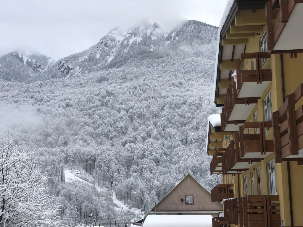 A great option for family vacation: apartment «S Vidom Na Gori Apartments 2» is located in Krasnaya Polyana. This apartment is located in the city center. In the morning, have a cup of coffee while looking at the city from the window. You can take a walk and explore the neighbourhood area of the apartment — Krasnaya Polyana Ski Resort, Mamzdishha Mountain and Akhun Tower.