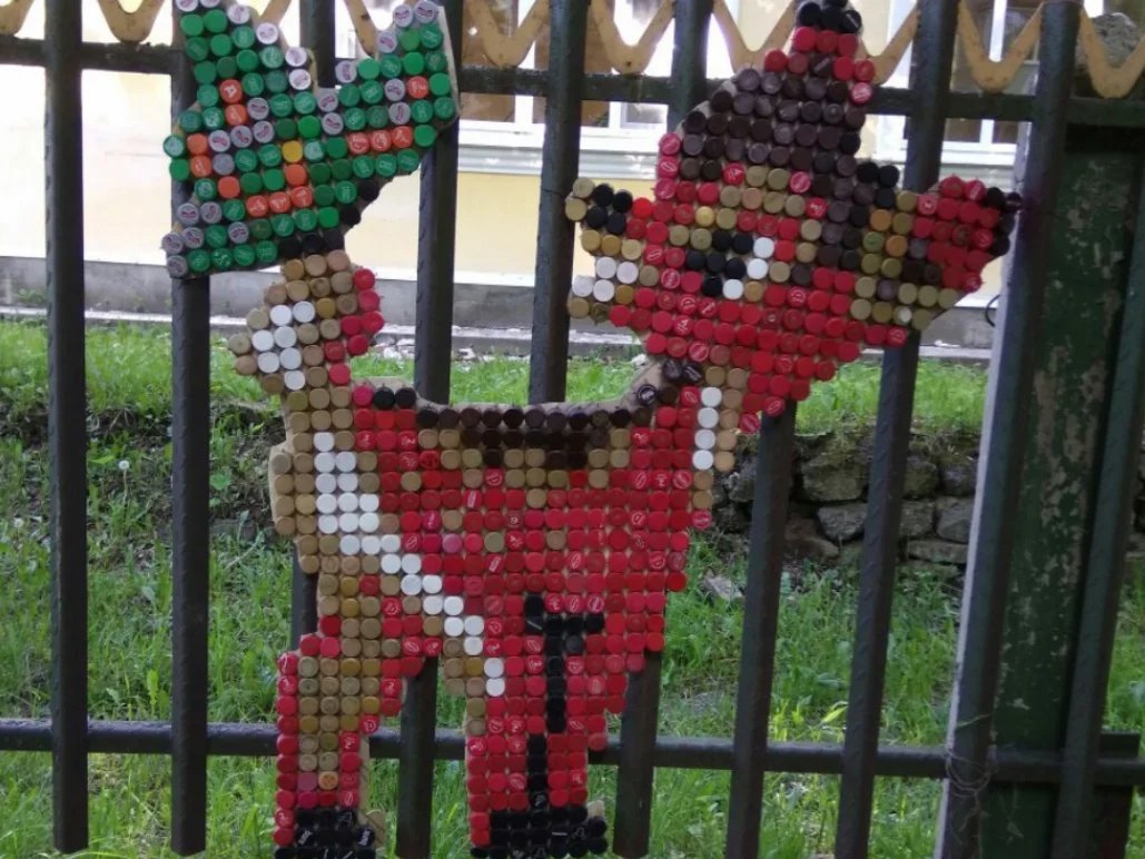 The fence of the courtyard of houses along Dzerzhinsky Street is decorated with images of cartoon characters. The drawings are not made with ordinary paint, but are lined with plastic lids. The author of the project was a local resident, whose name remains unknown, and all that is known about him is that he works as a janitor in the area of this yard. It took more than 2000 caps to create these drawings.