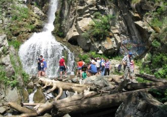 The place is about 40 km away in one direction. Then walk to the small waterfall of the Che-chkysh stream. Along the way, you can see rock carvings from the Bronze Age and the Middle Ages.