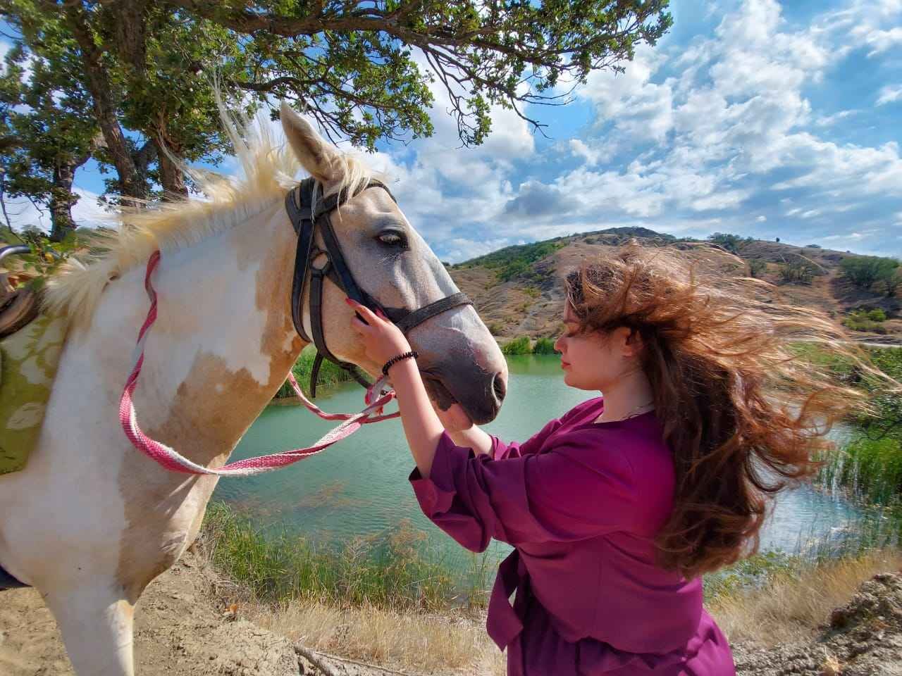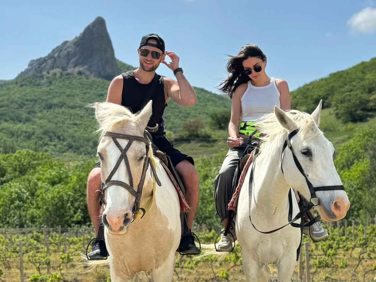 The 5-hour route passes through the Echki-Dag mountain range. You arrive at the sandy beach of Lisya Bay. Those who wish can swim with horses in the sea. Upon returning to the base, you will find an oriental table and Crimean wine.