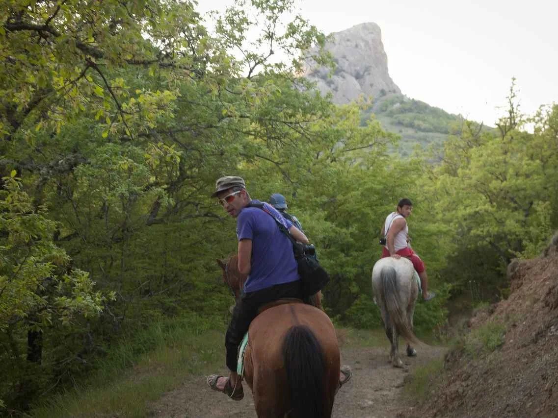 * After you are taken to the equestrian base, which is a 10-minute drive from Koktebel, you will be met by experienced instructors. They will put everyone on horses, give instructions and lead them to the route.