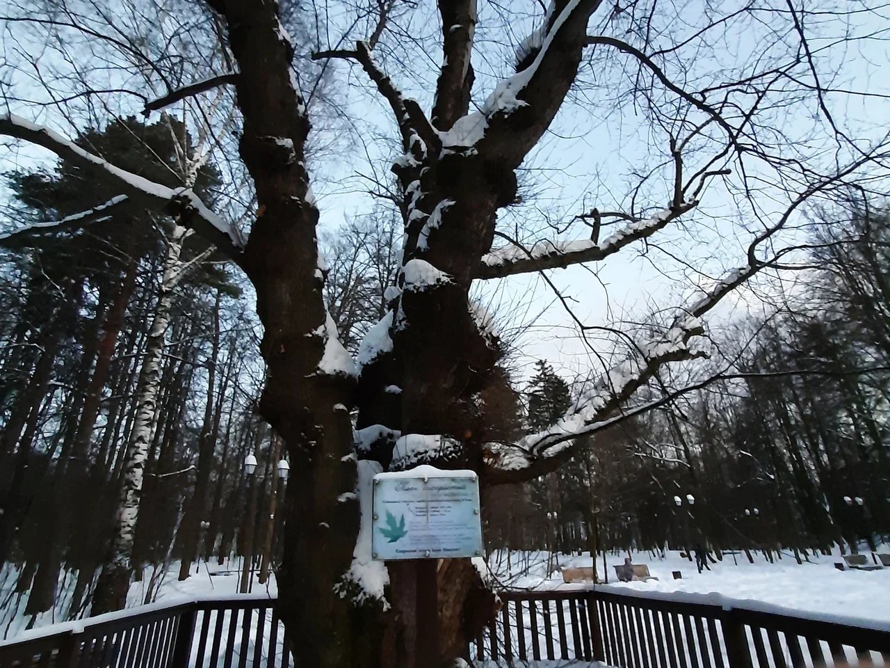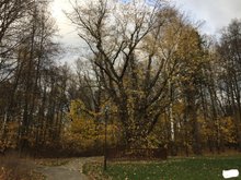 Sugary maple. A unique example of landscape art of the XVIII century. The age is about 250 years old. The diameter of the trunk is 1.6 meters. The height is about 30 meters. This tree is a guest from North America. At the end of the XVIII century, Count I.S. Gendrikov brought several maple seedlings from an overseas trip to the manor park. According to the fashion of those times, the sprouts were planted in one hole. Gradually, the trunks grew together, and the maple turned into a mighty giant.