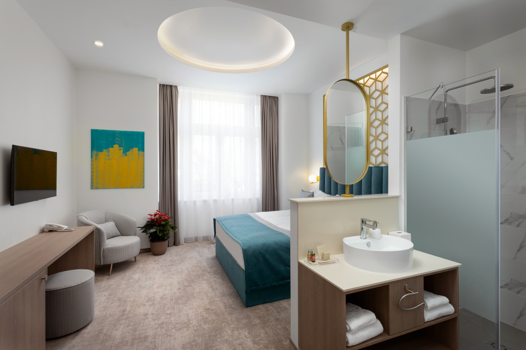In the room, for you, there is a TV and a mini-bar. Please note that the listed services may not be available in all the rooms.