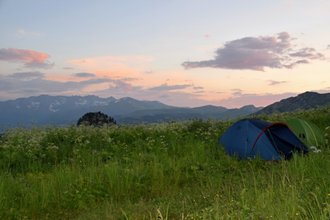 This is a day of acclimatization, light walking and radial routes (optional), such as the first day in the mountains should be. We won't have to pack a backpack at all on this day. We begin the ascent at the beginning along the forest road, and then along the picturesque Maly Bambak ridge to Chai Mountain in its western part. Already on the way from the car, views of the majestic Skirda ridge and the deep gorge of the Urushten River will gradually open up. The stunning scale of the panoramas of the Red and Dead Rocks, the snow-white peaks of hr.The jugas, jagged like a dragon's tail, will definitely not leave anyone indifferent.