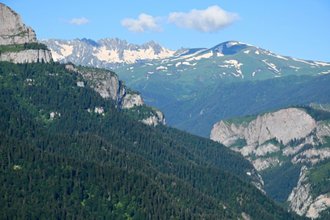 The Big Thach (adyg. Thyeshchi is a mountain range on the watershed of the Malaya Laba and Belaya rivers, located in the Western Caucasus, on the border of the Republic of Adygea and the Krasnodar Territory. A part of the mountain range located on the territory of the Republic of Adygea is part of the Bolshoy Thach Nature Park, which was included in the UNESCO World Heritage List in 1999.