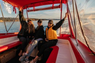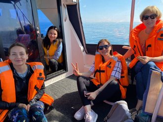Energized by the spirit of the island, we will settle down on the boat and embark on a long trip to the opposite shore. During the 6-hour journey we will see the picturesque bays, sandy coves and archipelagos of the Baikal islands.