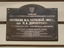 The mansion of M.N. Chernova is located near the Museum of the Don militia. The building was built in 1899. It is a two-storey brick building with a superstructure above its central part and an attic. The facade is decorated with stucco and relief figures. The mansion often hosted balls, receptions, performances, and other events. Currently, a branch of VTB Bank is located in the building. The house is classified as a national heritage site of regional importance.