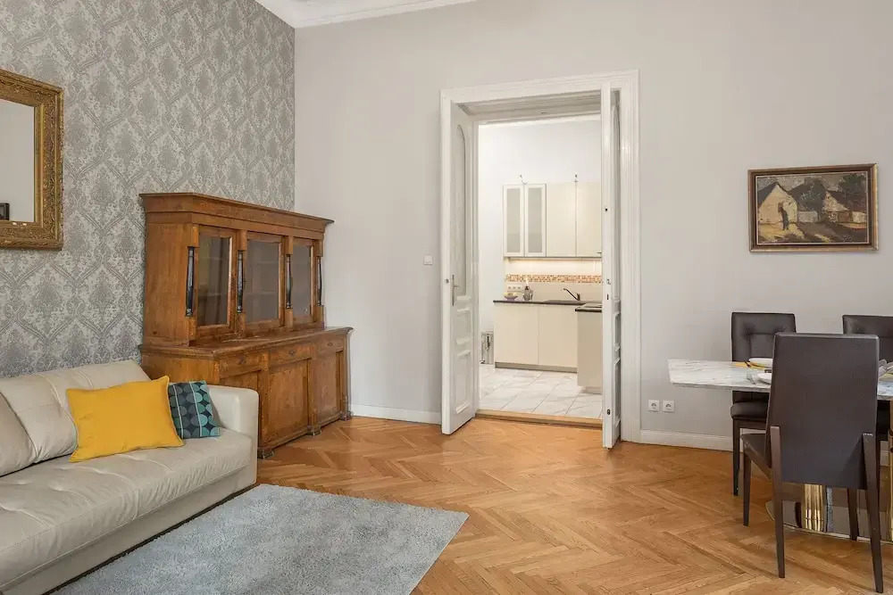 A perfect fit for a big group of travellers: apartment «New York Palace View Apartment» is located in Budapest. This apartment is located 2 km from the city center. You can take a walk and explore the neighbourhood area of the apartment — Blaha Lujza tér, Dohany Street Synagogue and Hungarian State Opera House.