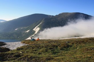 Then walk (14 km) to the parking lot in the valley of the Maly Kazyr river, where we set up camp and can relax by the evening campfire