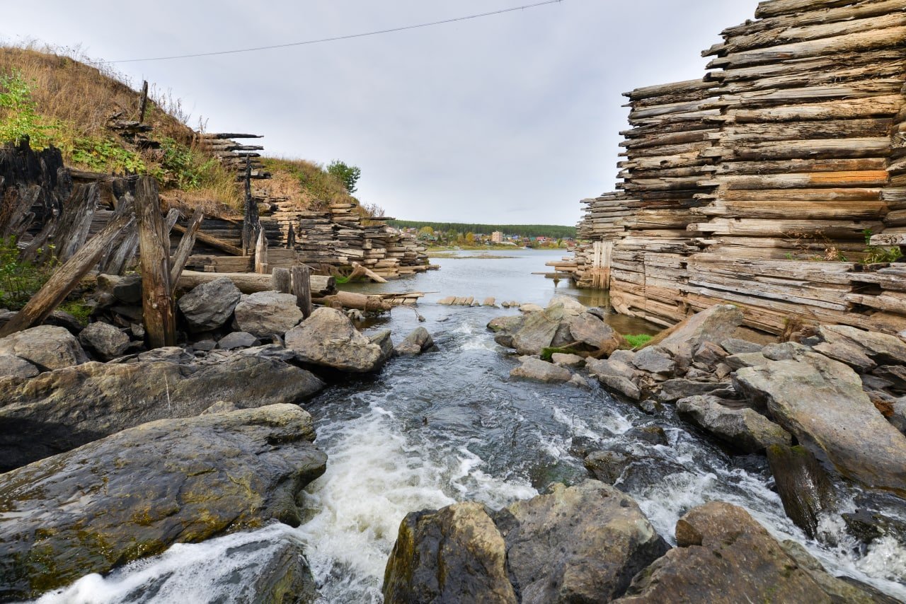 The dam and the Mariinsky Hammer Plant on the Revda River are cultural heritage sites of the Sverdlovsk region. The first dam was built on this site in 1783, and in 1840 the Mariinsky Ironworks was founded. At that time, there were 74 courtyards and 195 male souls in the factory settlement. The factory dam with a 6-lock trigger had a length of about 319 m. In 1918, the factory was nationalized and then destroyed, but the dam has been perfectly preserved to this day.