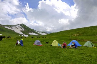 Уникальность похода на Кавказе состоит в разнообразии климатических зон и ландшафтов по пути: он проходит через альпийские луга, снежники, хвойные и лиственные леса и приводит тур через горы к морю, в настоящие субтропики.