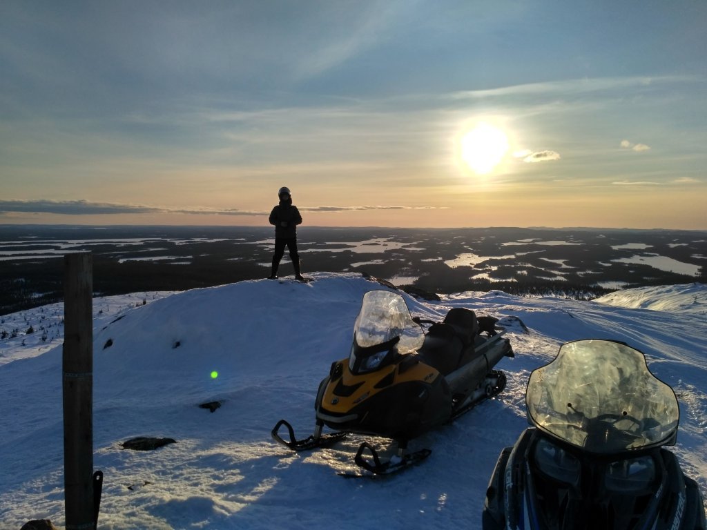 • On this day you will visit Nuorunen Mountain. Enjoy its scenery and in the evening, at about 19-20 o'clock, return to the village, where dinner awaits you and after it a transfer to the Louhi railway station (100 km). A total of 120 km by snowmobile on this day.
