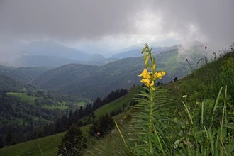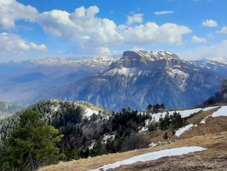 We begin the ascent at the beginning along the forest road, and then along the picturesque Maly Bambak ridge to Chai Mountain in its western part. Already on the way out of the car, views of the majestic Skirda ridge and the deep gorge of the Urushten River will gradually open up. The stunning scale of the panoramas of the Red and Dead Rocks, the snow-white peaks of xp.The jugas, jagged like a dragon's tail, will definitely not leave anyone indifferent.