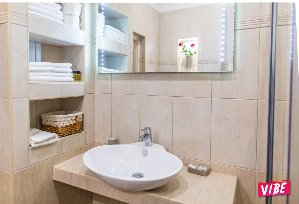 The room is warmly decorated and has everything you need to have a rest after a long eventful day. There is a shower and a TV. The room equipment depends on its category.