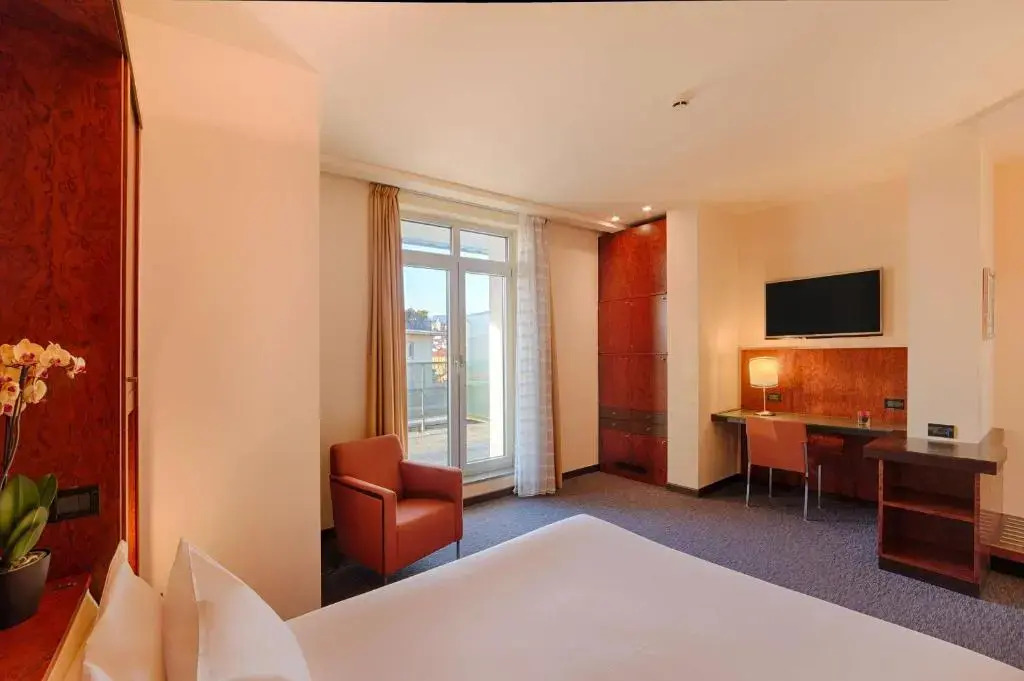 Want to take a rest and explore the city? Hotel «NH Bergamo» is located in Bergamo. This hotel is located in the very center of the city. In the morning, have a cup of coffee while looking at the city from the window. You can take a walk and explore the neighbourhood area of the hotel — Piazza Matteotti, Teatro Donizetti and Caprotti Park.