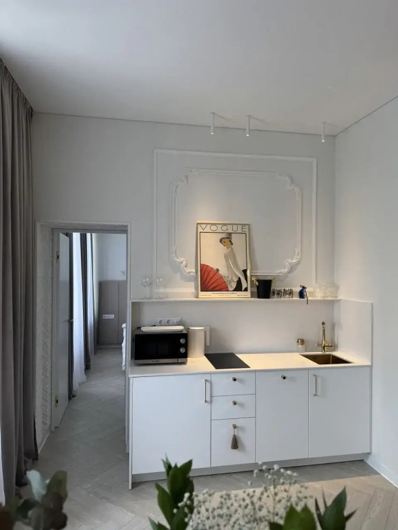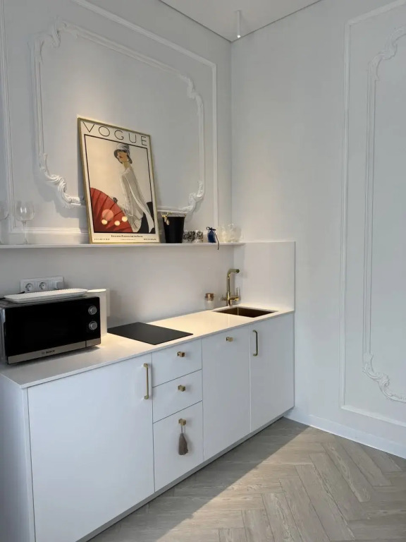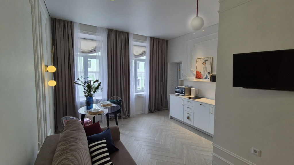 Want to be always on-line? Wi-Fi is available. If you travel by car, you can park in a parking zone. At the guests’ disposal, there’s also ironing. The staff of the apartment speaks English and Russian.