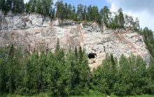 The mountain is located at the source of the Kislyanka River, 18 kilometers southwest of the city of Revda. Its height is 526.7 meters. There is a diamond-shaped through hole in the rock, about 1.5 meters in size. In this regard, the mountain was named "holey". The rock is formed by gabbro rocks, covered with various lichens. The mountain slopes are filled with forests. From the top there is a panoramic view of the surroundings.
