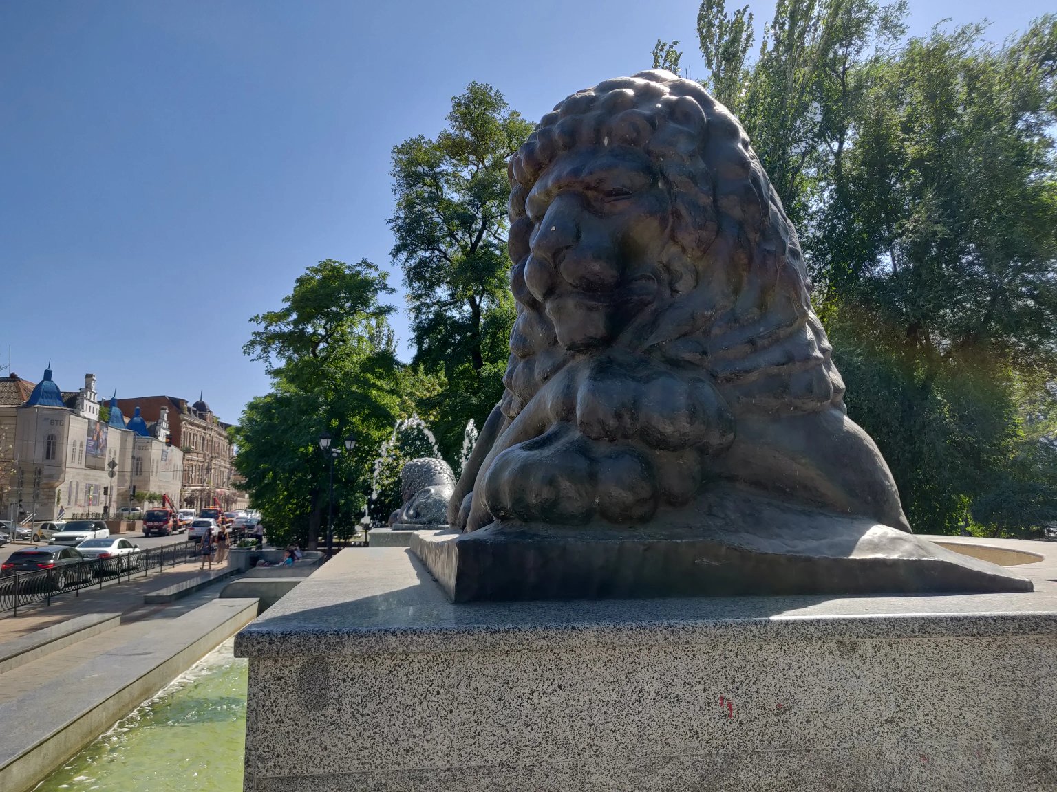 The architectural and sculptural complex "Lions" was erected in 1917 and is located right next to the building of the Rostov branch of the state Bank, namely in the eastern part of the square of Soviets. On three sides of the fountain there is a platform that leads down the stairs to the square. The complex is designed in Art Nouveau style and fits well with the architecture of the nearby bank. The Lions are one of the most popular places among both the townspeople and visitors.