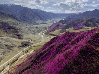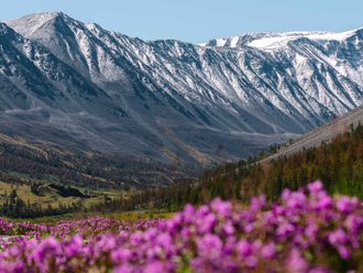 We will drive along the Chuisky highway, which is one of the five most beautiful roads in the world. Along the way, we will stop at the most iconic places: the confluence of the Chuya and Katun rivers, the Seminsky and Chike Taman passes, the Katun terraces... and, of course, the blooming purple mountains, where we will make stops for photo shoots.