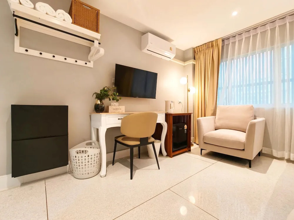 Looking for a home comfort: apartment «AB House» is located in Bangkok. This apartment is located in 6 km from the city center. You can take a walk and explore the neighbourhood area of the apartment — Pratunam Market, Ratchaprarop and CentralWorld Shopping Complex.