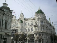 The Kostanaev Apartment Building is a building located in Rostov-on-Don, 56 Bauman Street. It is included in the list of cultural heritage sites and has architectural significance. The building is a typical example of Rostov architecture of the 19th century, a two-storey building with retail stores on the ground floor and residential apartments on the second. Before the arrival of Soviet power, the apartment building was owned by the Kostanaev family.