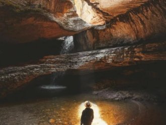 The Saltinsky waterfall is open to your gaze, are you ready to walk through the narrow entrance to the cave? Get ready to walk on the water in rubber boots, of course) We will reach the raging waterfall that falls from the holes into the cave, filling it. The phrase get away with it would be appropriate here, we'll teach you how to do it).