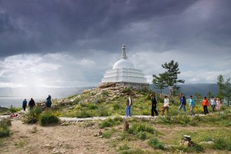 1. The excursion to Ogoy Island will take place on a speedboat. Along the way, a stop is planned at a source that is enriched with silver ions. Due to this, the water in it has healing properties. We dock at the island. Here you will see the Buddhist stupa of enlightenment. Go around it 108 times and achieve the main goal of Buddhism — enlightenment. To feel the minimal effect, it is enough to make 7 turns and make a wish. If your thoughts are pure, then it will definitely come true!