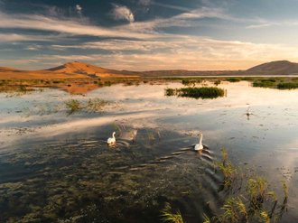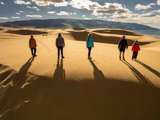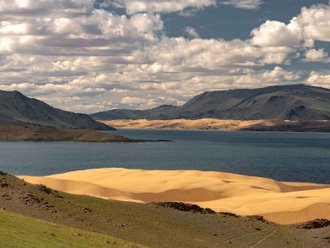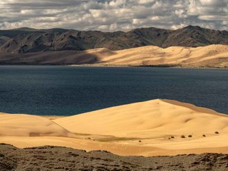 Transfer to the Mongol Els sands to Lake Eeren Nuur. A walk through the dunes, photo shoots by the lake in the sands, overnight at a yurt campsite.