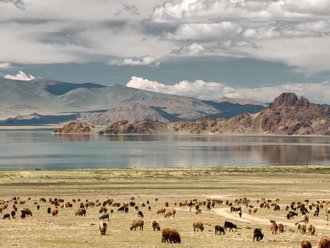We take the scenic mountain road to Ulaangom and the northern highway and move to Lake Hyargas Nuur. Sunset meeting at the lake. Overnight at a campground by the lake. Bathhouse.