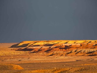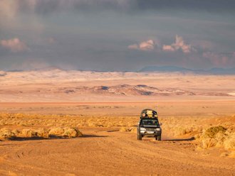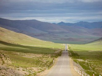 Today we pass the last dirt roads and come out onto the asphalt. Transfer across the Khovd to Ulgi. Overnight at a yurt campsite, shower.