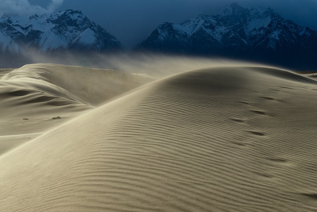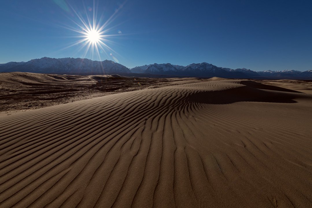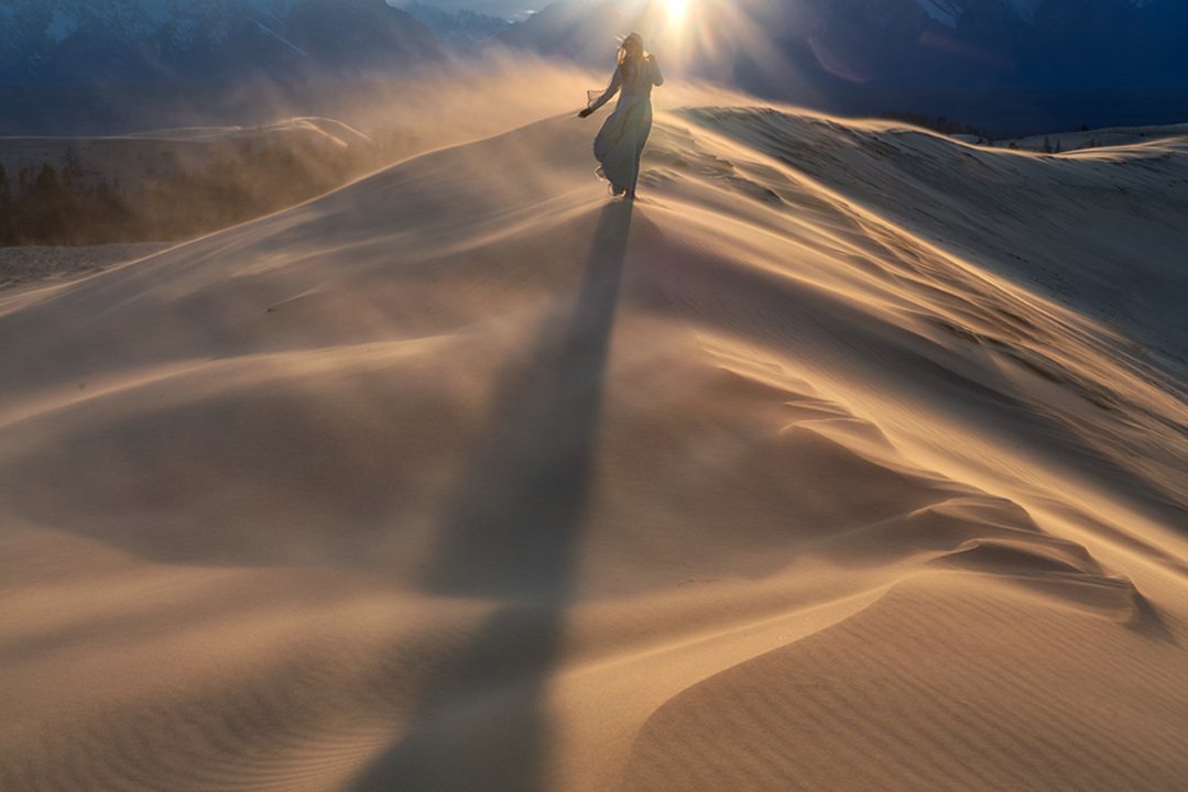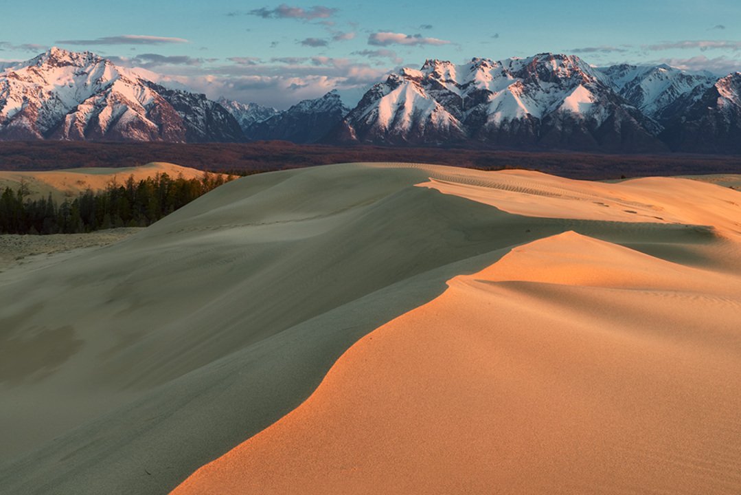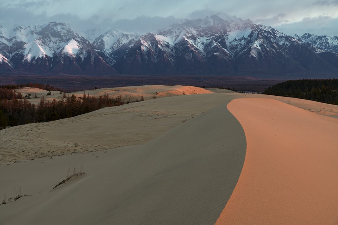 Imagine the sand dunes against the backdrop of the snow-capped mountains of the Kodar range. Here they are side by side, nearby and seem to contrast with each other, but on the other hand they complement each other so much that it remains only to wait for good light and condition to capture a photographic masterpiece. Sometimes the Charsky sands are called the northernmost desert in the world.