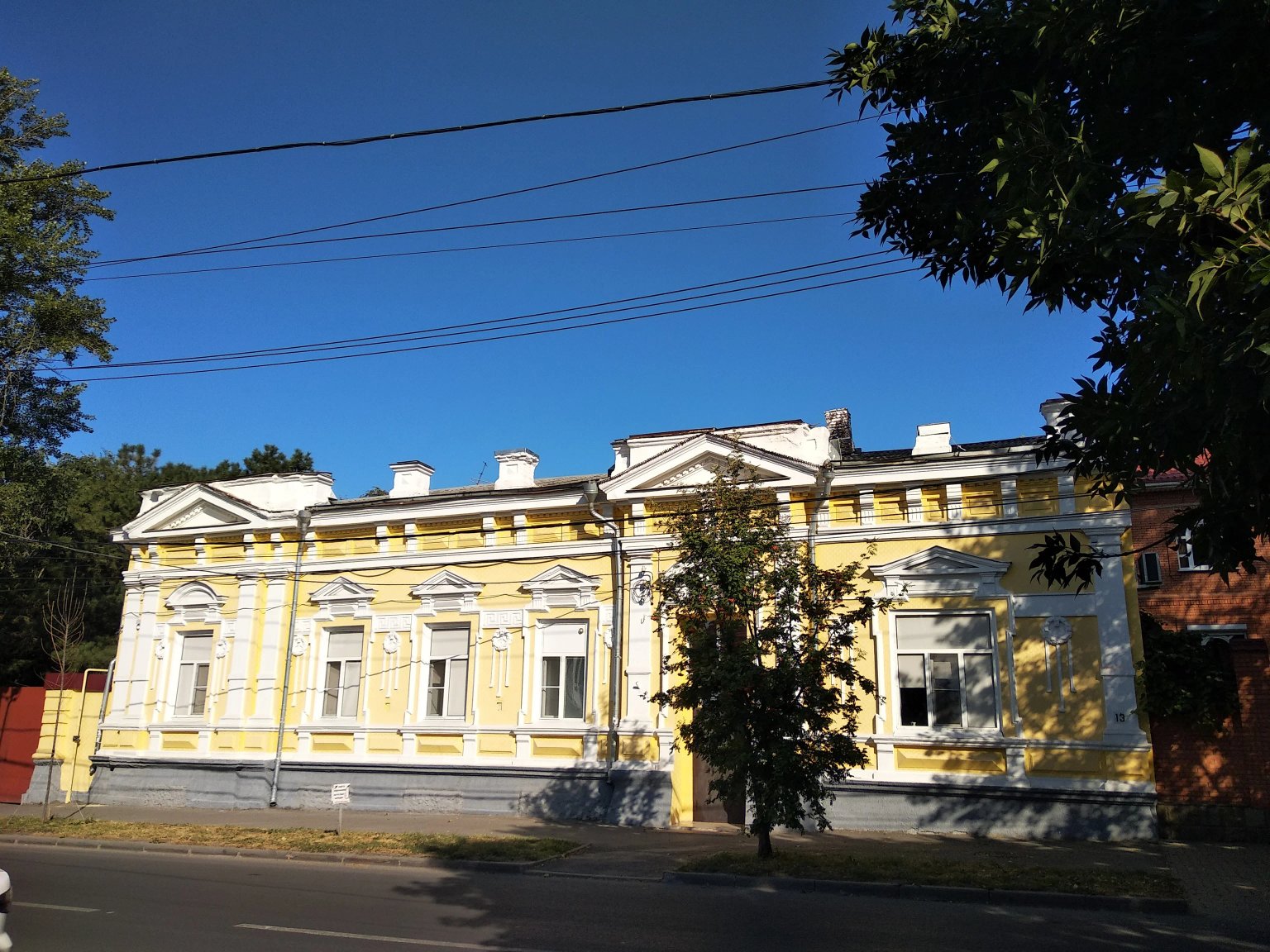 The mansion of G.F. Cheprastov is located near the residential building of S.I. Bardakhchianets. The building was built in 1881-1883. It is a one-story yellow brick building, the facade of which is decorated with stucco. Currently, the building houses a Medical Rehabilitation Department. The house is classified as a national heritage site of regional importance.
