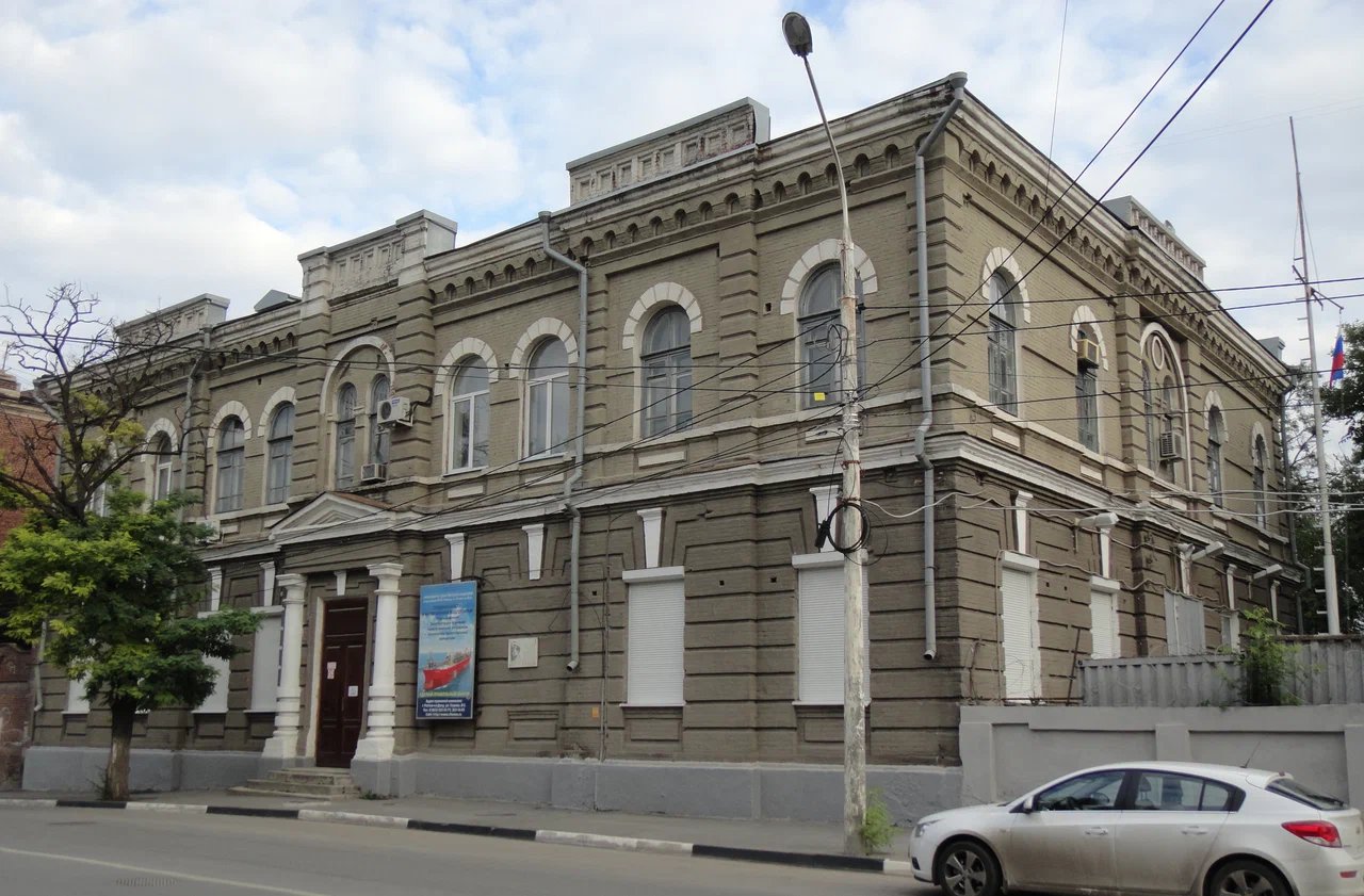 The building of the Rostov Naval College was built in 1896. The two-storey brick building faces Sedova Street. Three lobed intersections run along the entire height of the building, forming an architecturally and artistically symmetrical facade. The first floor has a rusticated covering, the window openings of the first floor are decorated with large locks and window frames. The main entrance is decorated with a portico consisting of two columns.