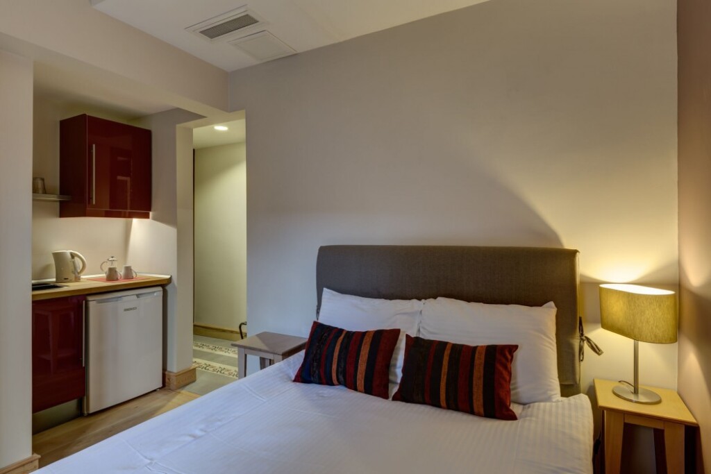 В отеле 20 номеров в 8 различных категориях, и почти все они оборудованы мини-кухней. Чтобы познакомить гостей с настоящим духом Перы, в отеле были сохранены мраморные лестницы и оригинальные перила, сверхвысокие потолки и фасад здания. Всё это гармонирует с натуральными материалами, такими как массивные деревянные полы, плитка из натурального камня, железо и стекло.