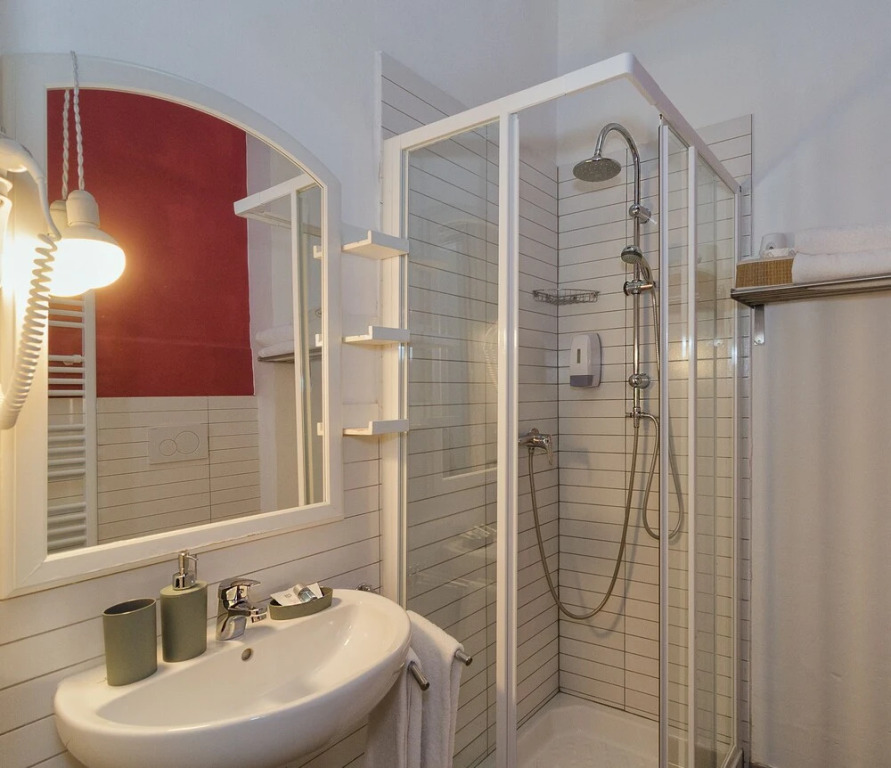 The room is warmly decorated and has everything you need to have a rest after a long eventful day. There is a shower and a TV. Please note that the listed services may not be available in all the rooms.