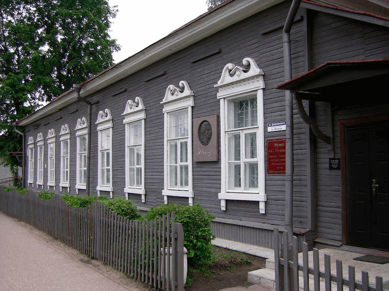 The Olenin Estate is a rare example of an urban noble estate. Alexander Sergeyevich Pushkin often visited this wooden house, built at the beginning of the 19th century. His museum is now operating here. The manor house stands on the left bank of the Tvertsa River. The estate was built at the end of the 19th century and consists of several buildings located on a well-maintained territory. It was built in the neoclassical style, with elements of Baroque and Renaissance. The original interior elements have been preserved inside the house.