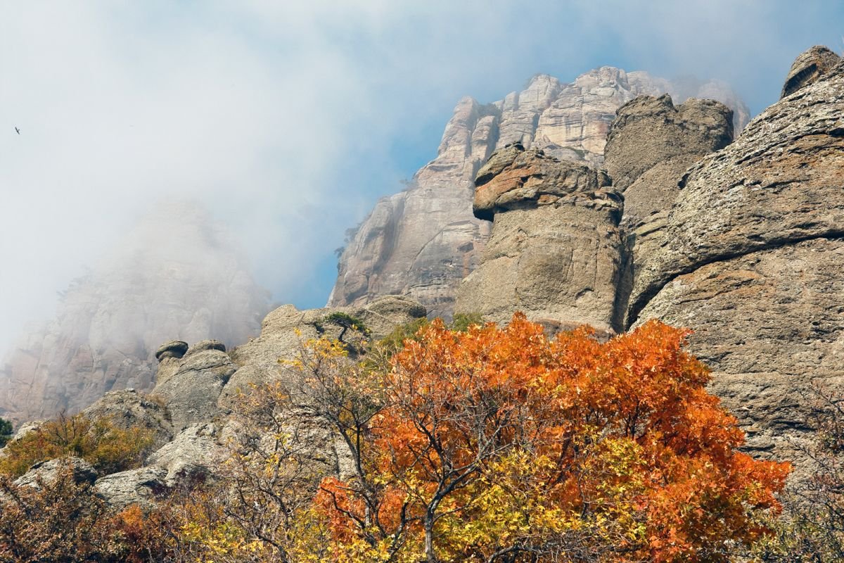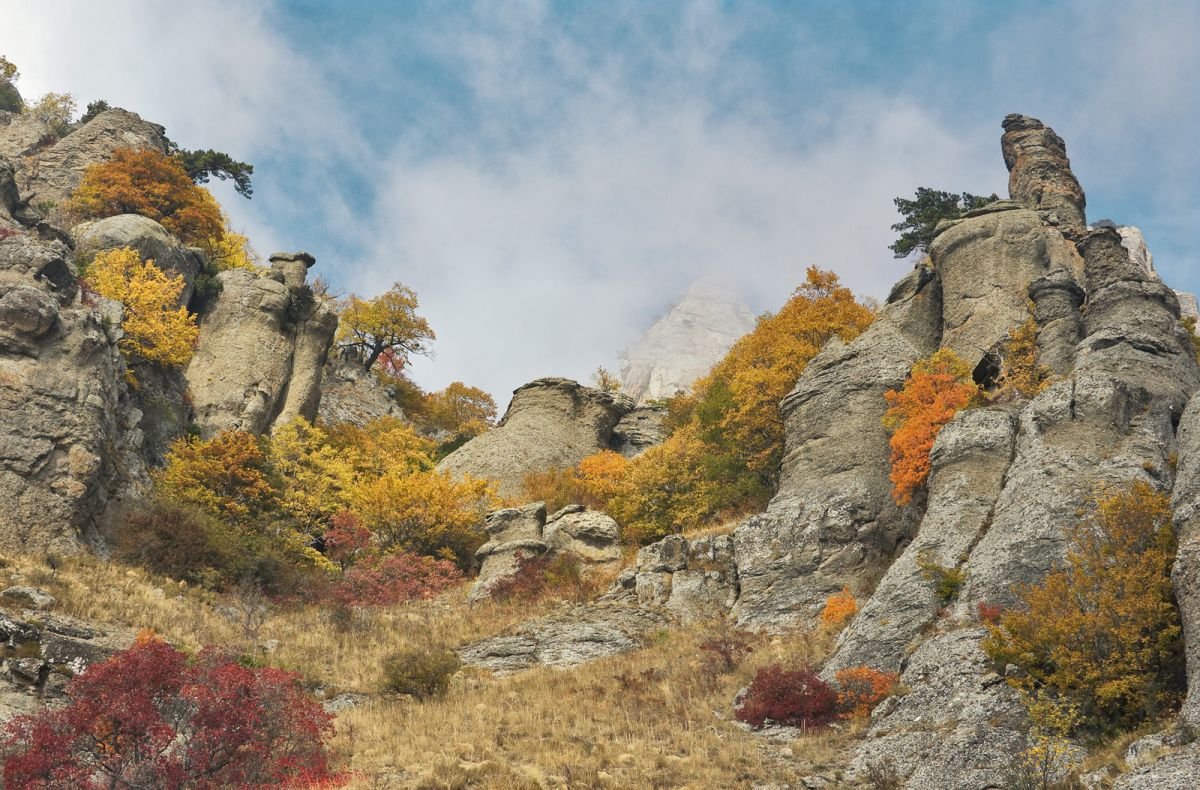 The mountain is composed of rocks that are easily weathered. Various weathering figures (columns, mushrooms, amphorae, etc.) are revealed during the walking tour along the slopes of Demerdzhi.