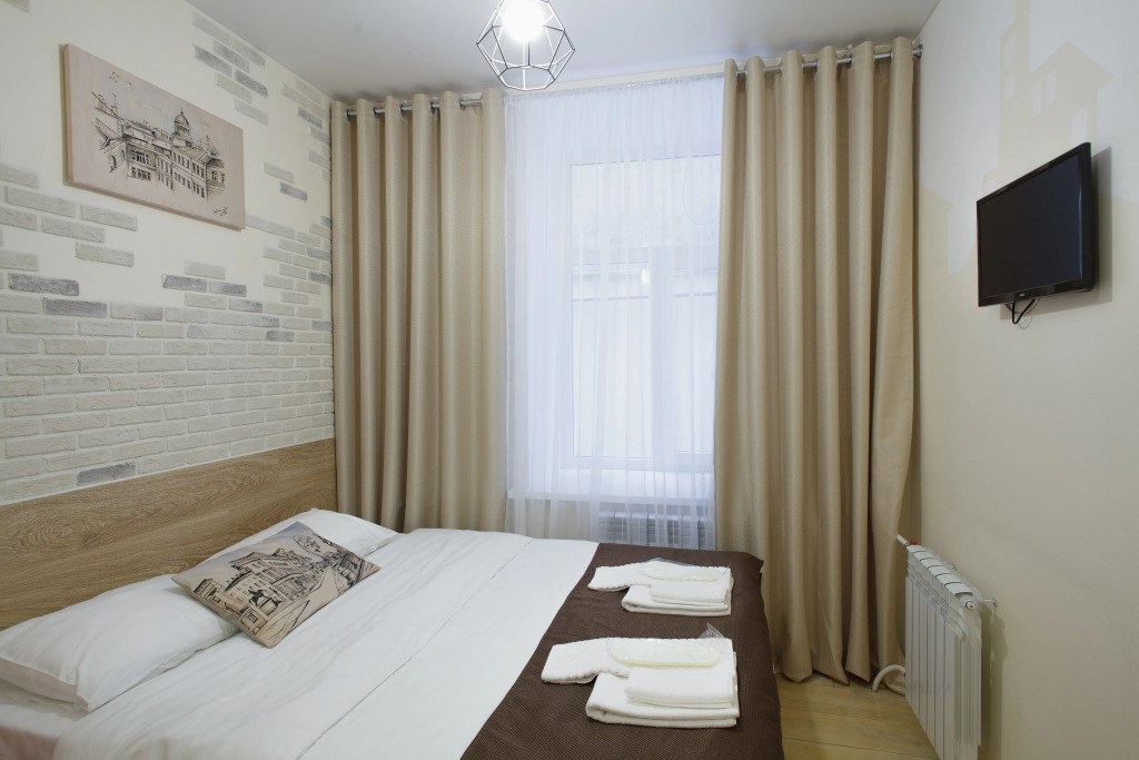 The room is located on the first floor, the windows overlook the courtyard. The guest house provides contactless check-in and express check-in and check-out. For the convenience of guests, a kettle, microwave, refrigerator, iron, hairdryer are available for use.There is a shared refrigerator at guests' disposal. All rooms have private bathrooms. The guest house staff speaks English and Russian.