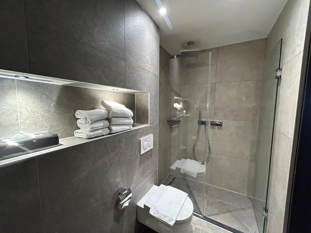The room is warmly decorated and has everything you need to have a rest after a long eventful day. There is an alarm clock, a shower, a TV and a mini-bar. Please note that the listed services may not be available in all the rooms.