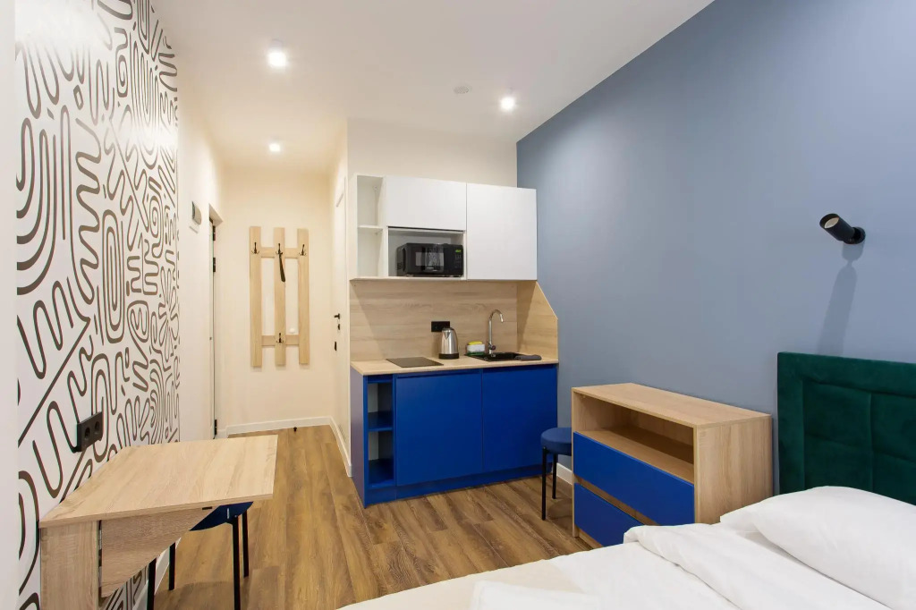 The location allows you to get to the Expocenter and Moscow City. The Moscow Zoo and the Planetarium are within walking distance. Within a radius of 300 m there is a cluster with bars and restaurants, the famous Krasnopresnensky baths and many shops with groceries and basic necessities.